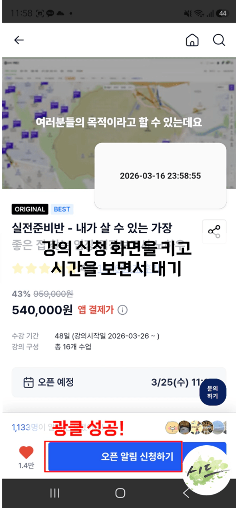 STEP4. 수강 신청할 강의를 클릭하고 서버 시간을 보면서 대기!
