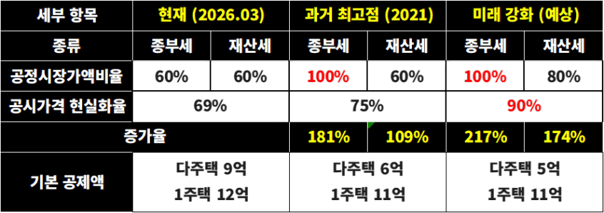 현재는 재산세/종부세 모두 공정시장가액비율이 약 60%인데,
