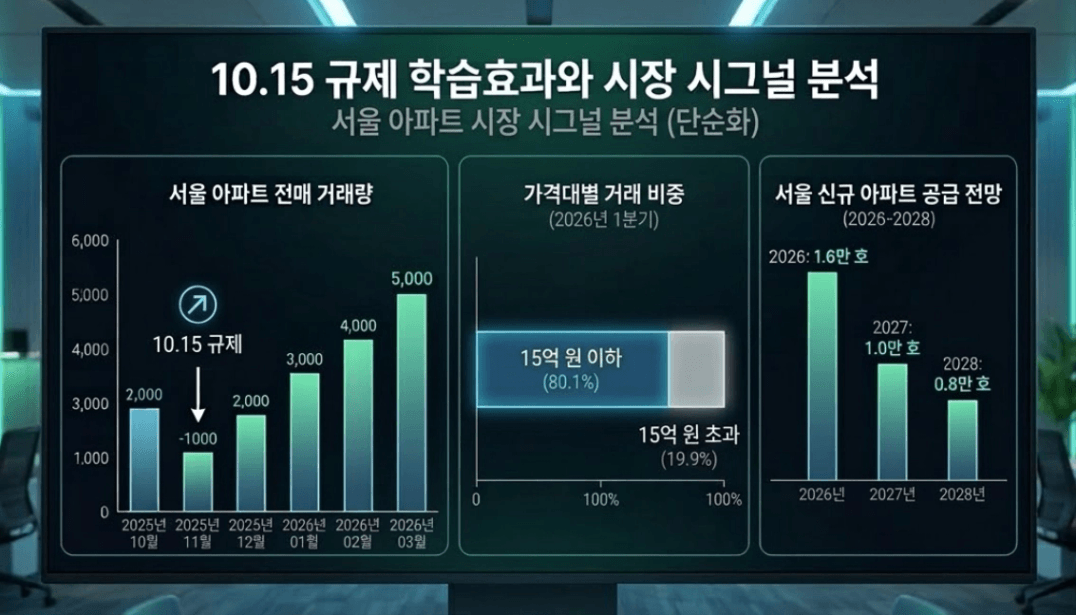 지금 터지는 5,000건의 거래량은 바로 이 학습효과의 결과물입니다. 이제 사람들은 규제가 나오면 "집값이 잡히겠구나"라고 생각하지 않습니다. 오히려 "정부가 규제할 만큼 여기가 뜨거운 곳이구나, 더 늦으면 기회조차 없겠구나"라고 반응합니다. 특히 10.15 대책으로 고가 자산의 숨통을 조이자, 시장의 에너지는 즉시 규제의 틈새인 '15억 이하' 시장으로 전이되었습니다.
