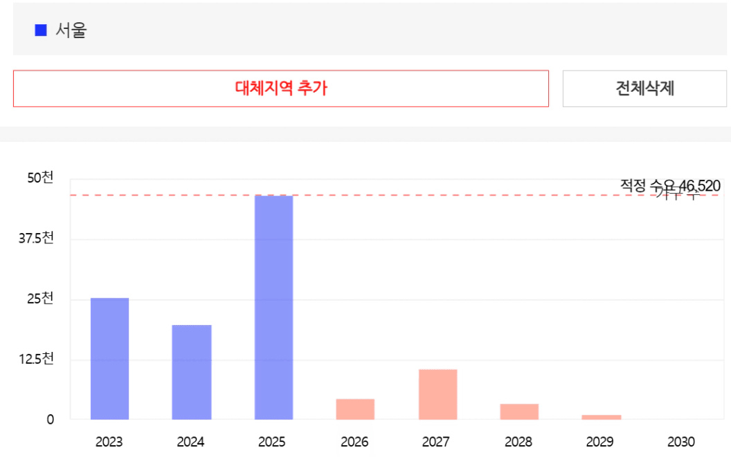 그 답은 2026년부터 2028년까지 확정된 ‘공급 절벽’에 있습니다. 서울의 적정 수요량(연간 4.8만 호)에 턱없이 모자란 1.6만 호(2026년), 1.0만 호(2027년), 그리고 역대 최저치인 0.8만 호(2028년)라는 숫자는 이미 예견된 재앙입니다. 공급이 1/6 토막 나는 시장에서 매매가격은 모르더라도 전세가격이 증가할 확률이 매우 높습니다.