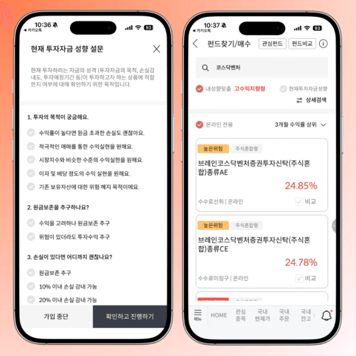 먼저 투자성향 설문을 하고 나니