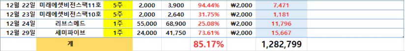 총 128만 2,799원을 벌었더라고요.