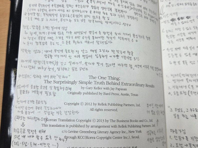 : 원씽이라는 책을 천천히 곱씹으며 읽기 위해 요약정리하며 읽었더니 많은 것들을 알게 됐지만 꼭 기억해야할 것은