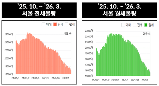 최근 6개월 사이 수도권 전세 및 월세 물량은 빠르게 소진되고 있습니다. 송파 잠실 등 일부 지역을 제외하면 대규모 입주장도 없으며 투자자가 만들어내는 신규 전세물량도 없다 보니 수요는 많고 공급은 부족해 가격이 급등할 수 밖에 없는 현실입니다.