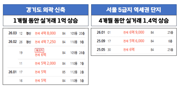 갑자기 오르는 호가를 보면서 이게 맞나 싶었는데 실거래까지 찍히니까 전세 또는 월세 구하는 분들이 당황스러울 수 밖에 없을 것 같습니다.