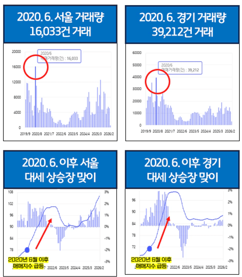급매를 기다리고 관망하던 매수 대기자와 팔고자 하는 매도자의 심리가 맞물려서 2020년 6월은 역대급 거래량을 기록하였습니다.