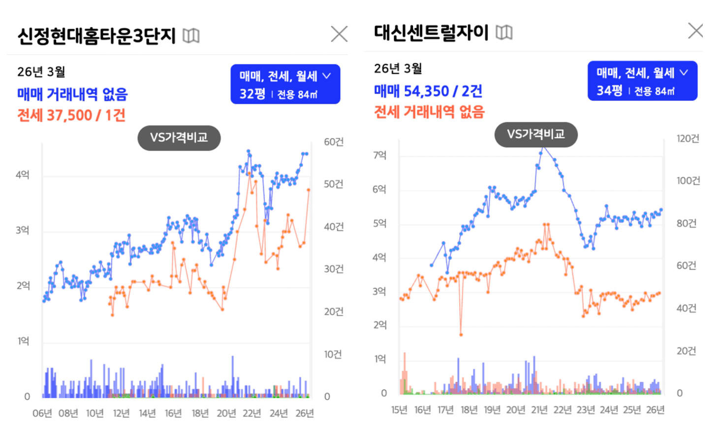 아래는 울산 남구의 신정현대홈타운과 대구 중구의 대신센트럴자이를 가지고 왔는데요.