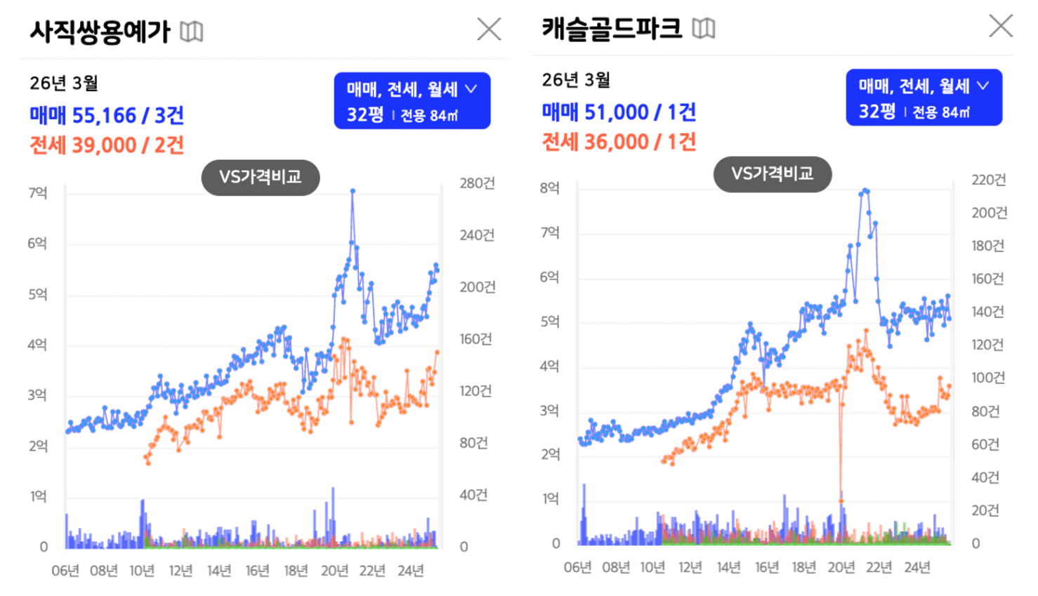 이런 단지들이 구축이지만 그렇기 때문에 매매가격은 보합을 하지만