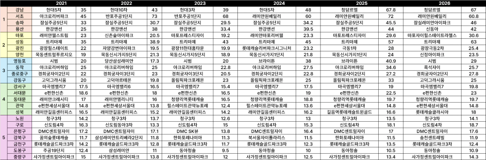 서울 25개구 대장아파트의 기록, 2026년 서울 부의 계급도가 바뀝니다.