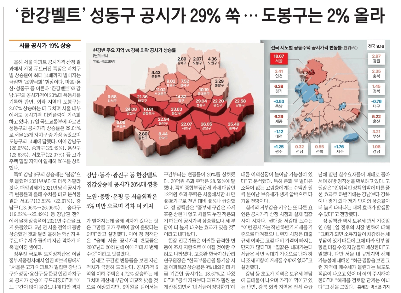 - 서울 평균 공시지가가 18.67% 상승
