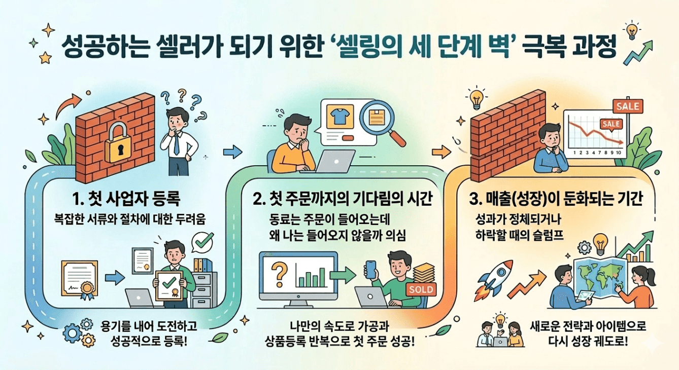 제가 생각하는 셀링의 세단계 벽이 있습니다.