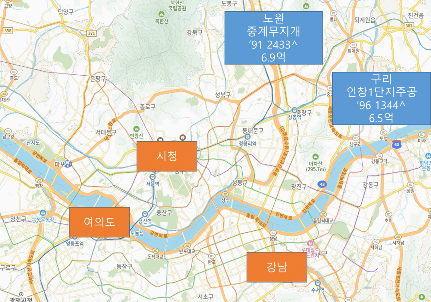 노원 중계무지개는 강남 50분, 여의도 56분, 시청 43분,