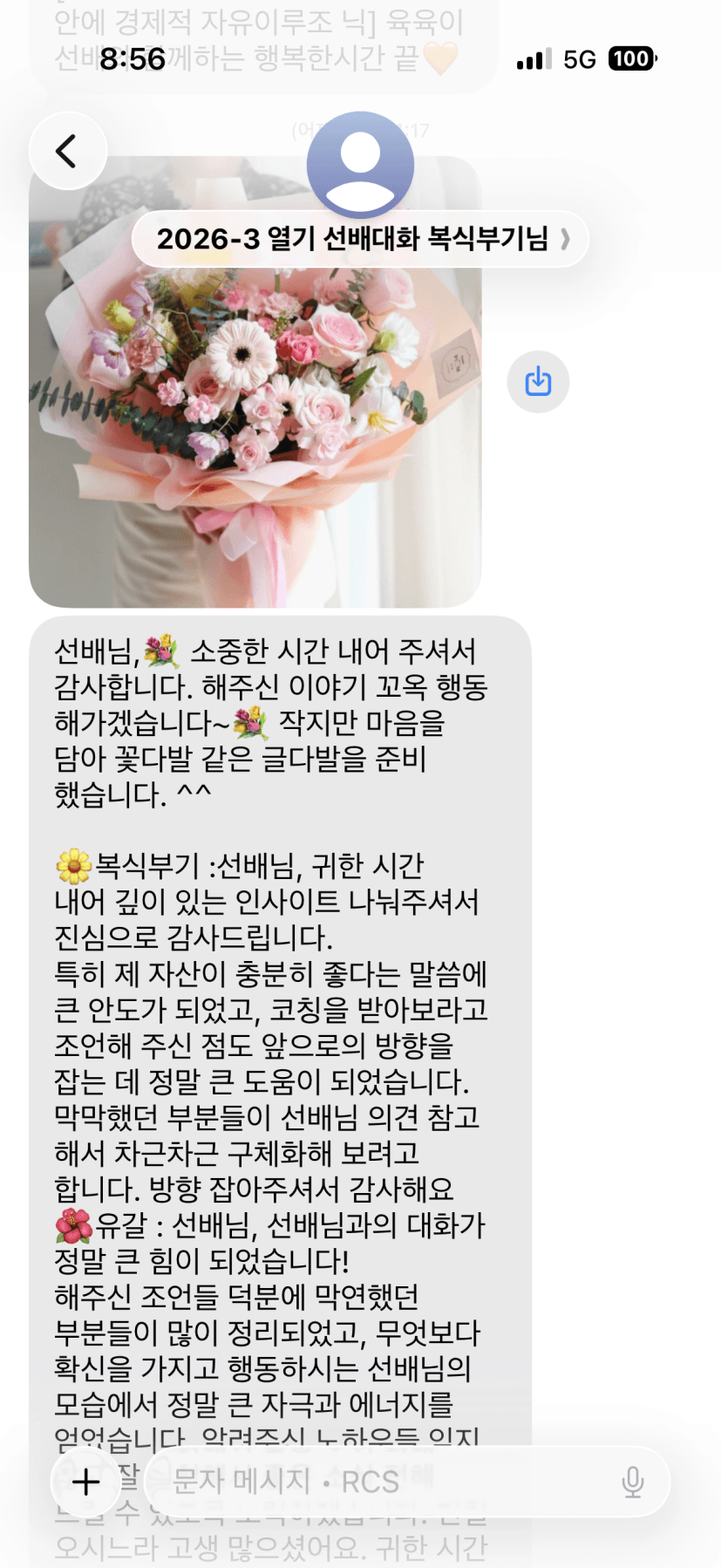 선배 대화를 통해 누구보다 힐링하고 힘을 받는 건 바로 선배라는 것을 느끼셨을 거라 생각합니다.