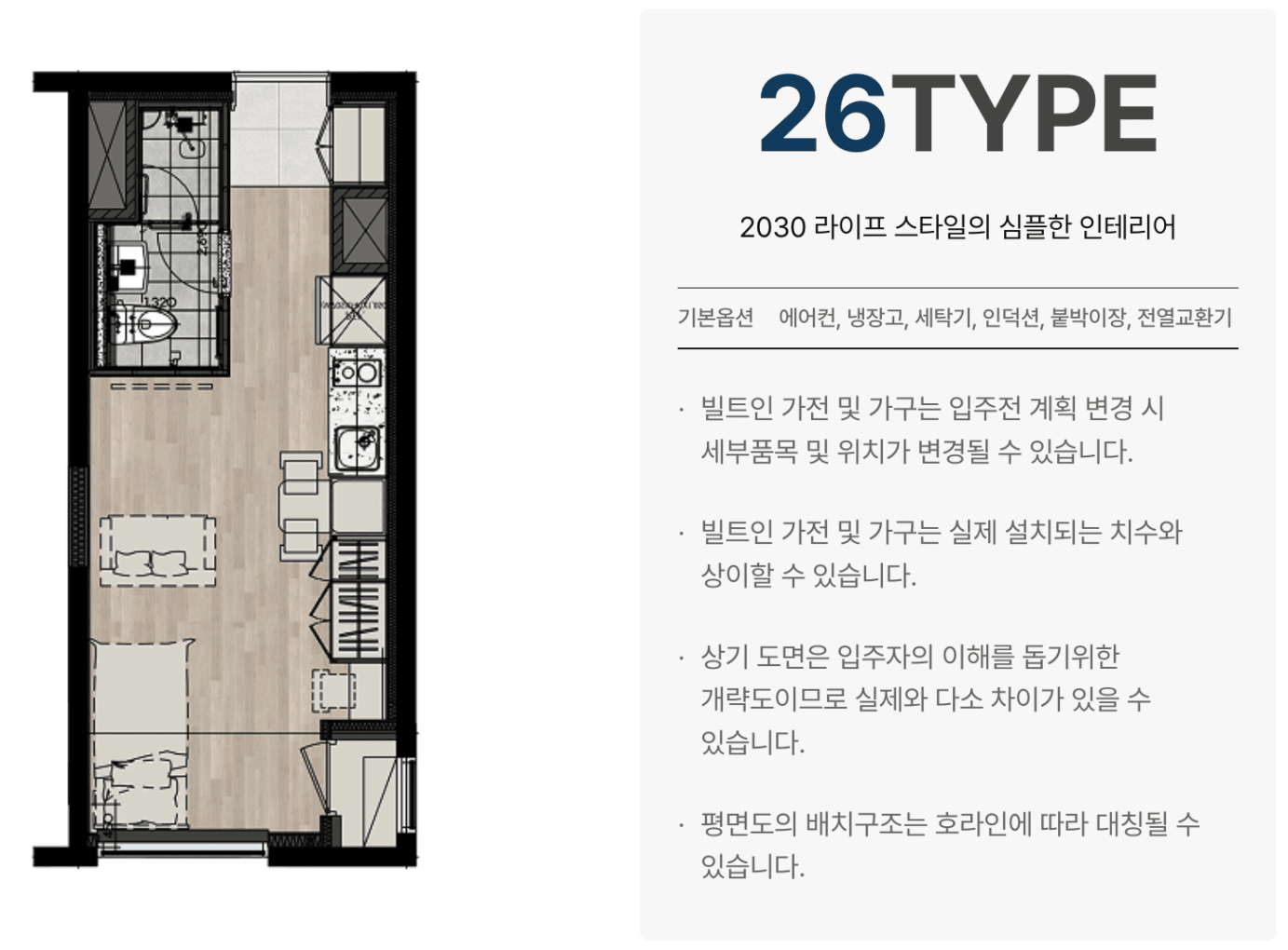 26타입 | 19.53㎡ | 5세대 | 5,700 + 월52 | 7,600 + 월45 | 9,600 + 월37 | |