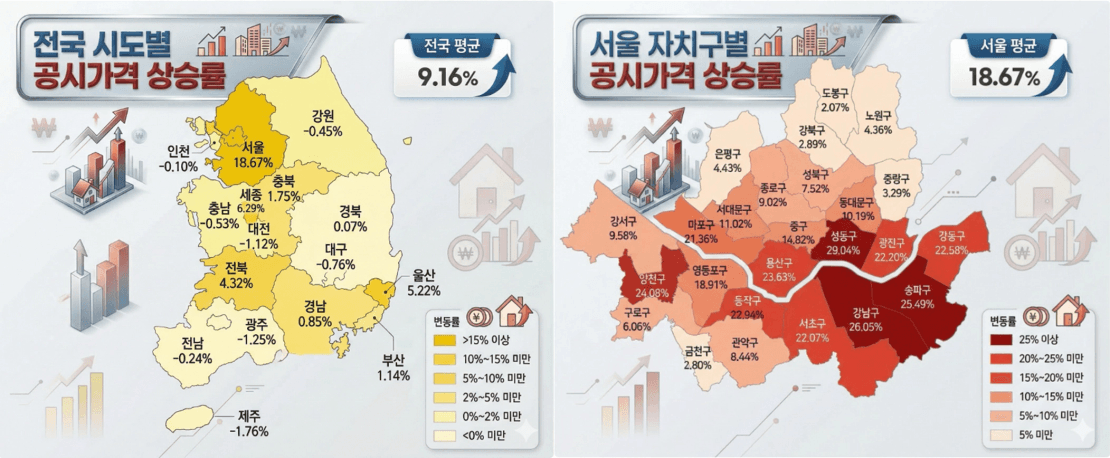 [뉴스] 서울 강남구 공시지가 26% 급등…자치구별 상승률 14배 차이