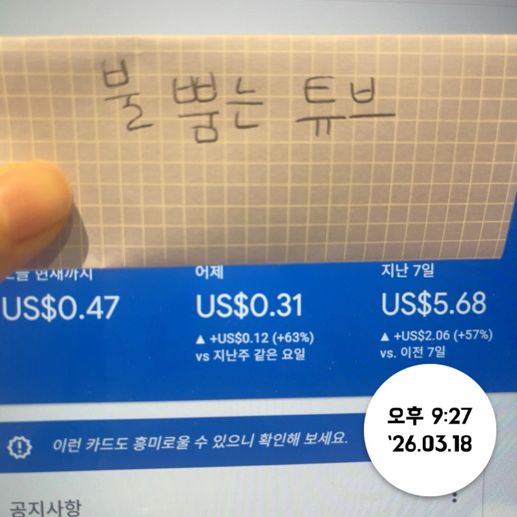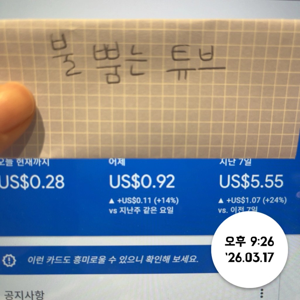 튜브님 화이팅~ 곧 안정적인 1달러 가능하실듯 싶어요~