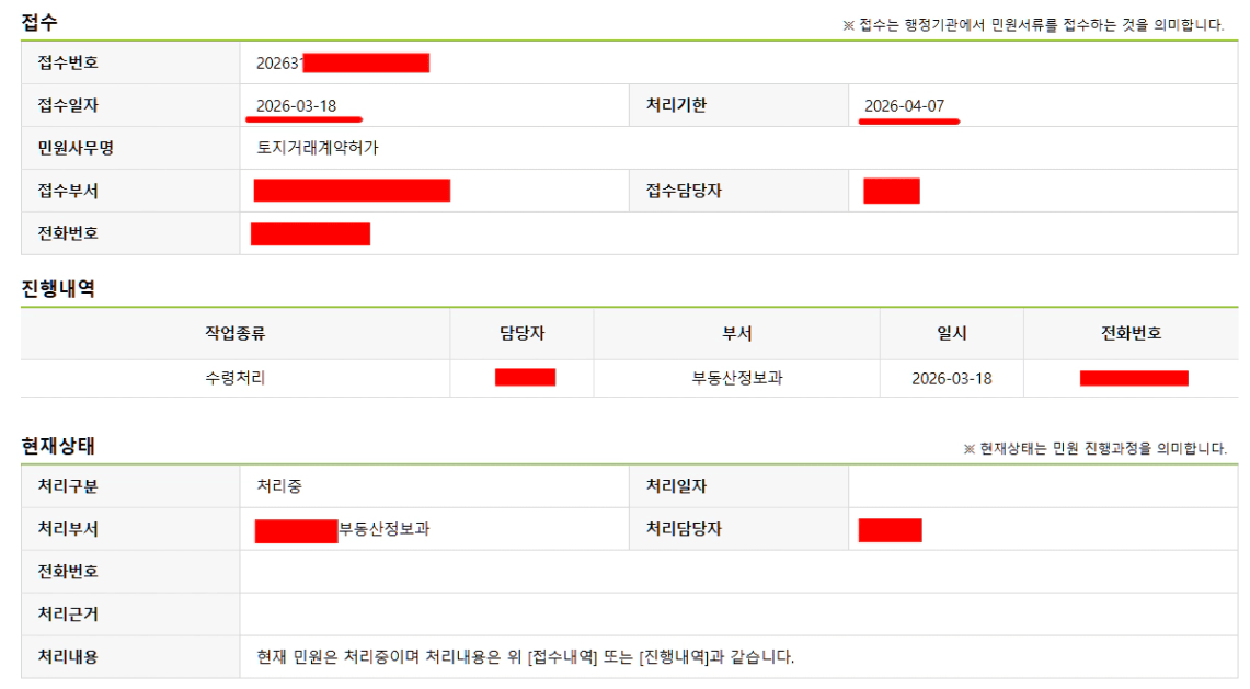게시판에 접수일자와 처리기간 등을 확인해서 언제 처리될지 확인이 가능합니다.