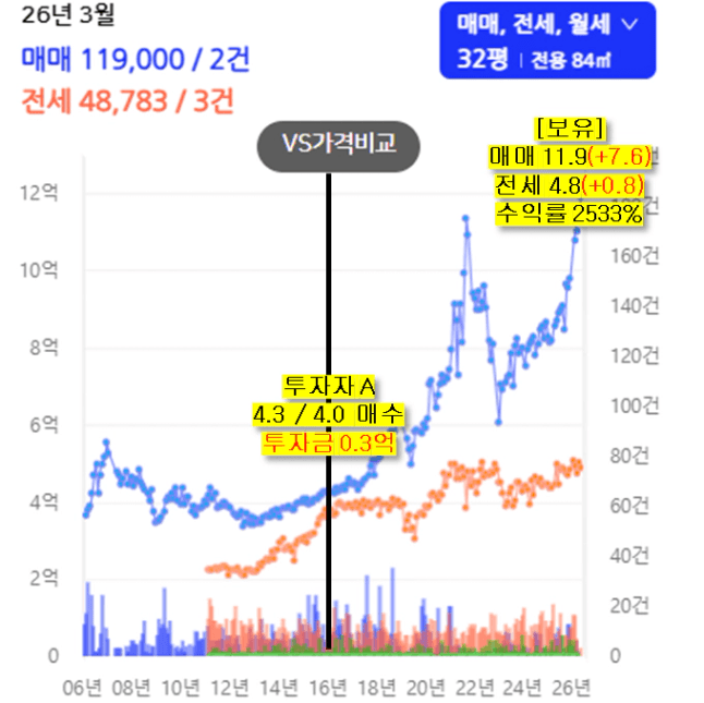 싼 가격과 적은 투자금으로 잘 매수했고