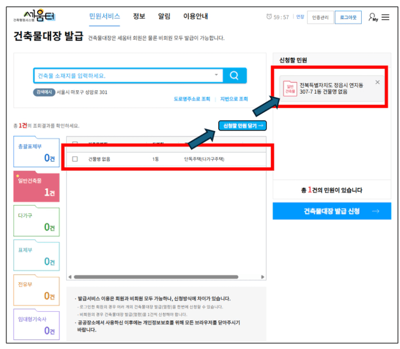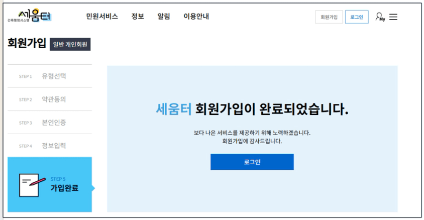 ➡️ 회원가입이 완료되었으면 이제 건축물대장발급으로 가보겠습니다