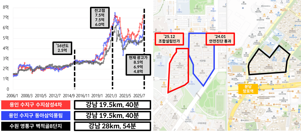 예를 들어, 강남 접근성이 좋은 용인의 단지는