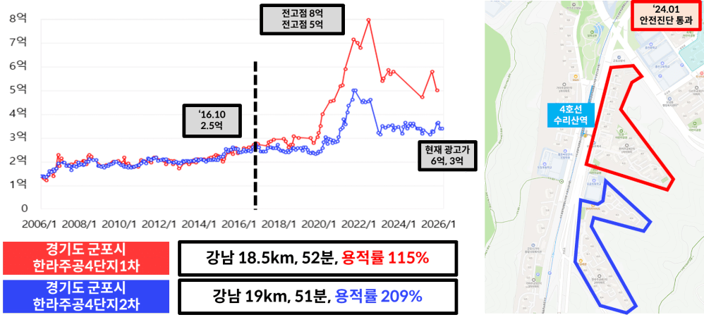 실제로 군포 내 입지가 유사한 단지를 비교해 보면,