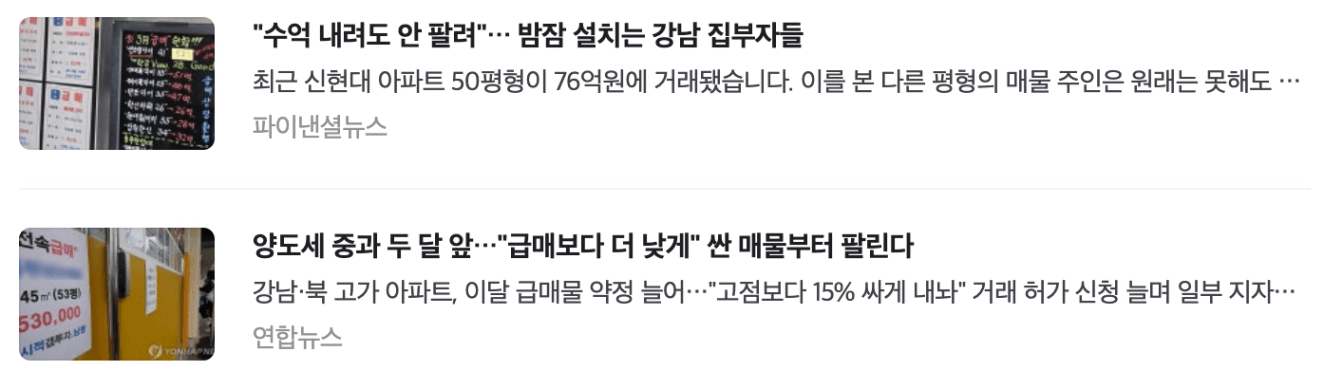 저렴한 매물이 나온다는 뉴스가 보입니다.