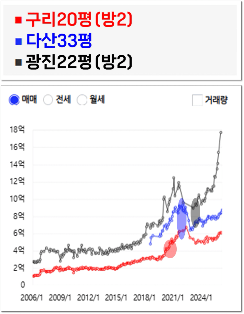 2년 뒤 좁디 좁은 그런 구축 아파트가 3억이 올랐습니다.