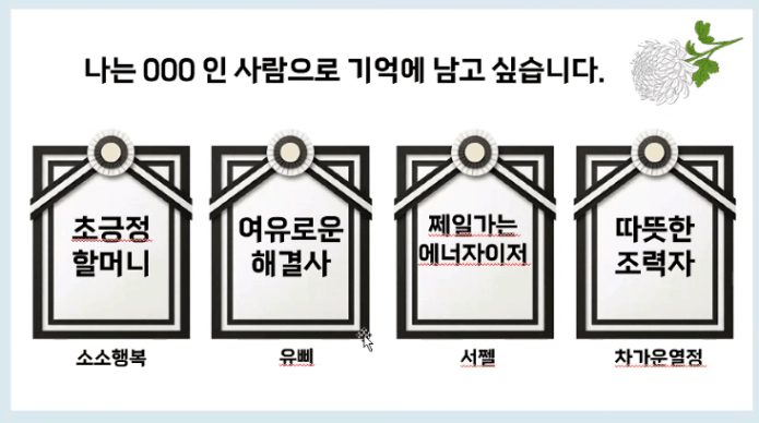 내 마지막 순간을 생각하면서 발제문에서 준 3개월동안 시도해볼 수 있는 행동이 어떤 것인지 생각하고 진짜 실천할 계획을 구체적으로 세울 수 있었던 시간이었습니다.