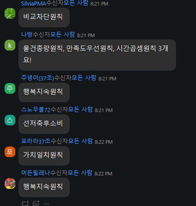 조원분들이 해주시는 이야기를 엮으면