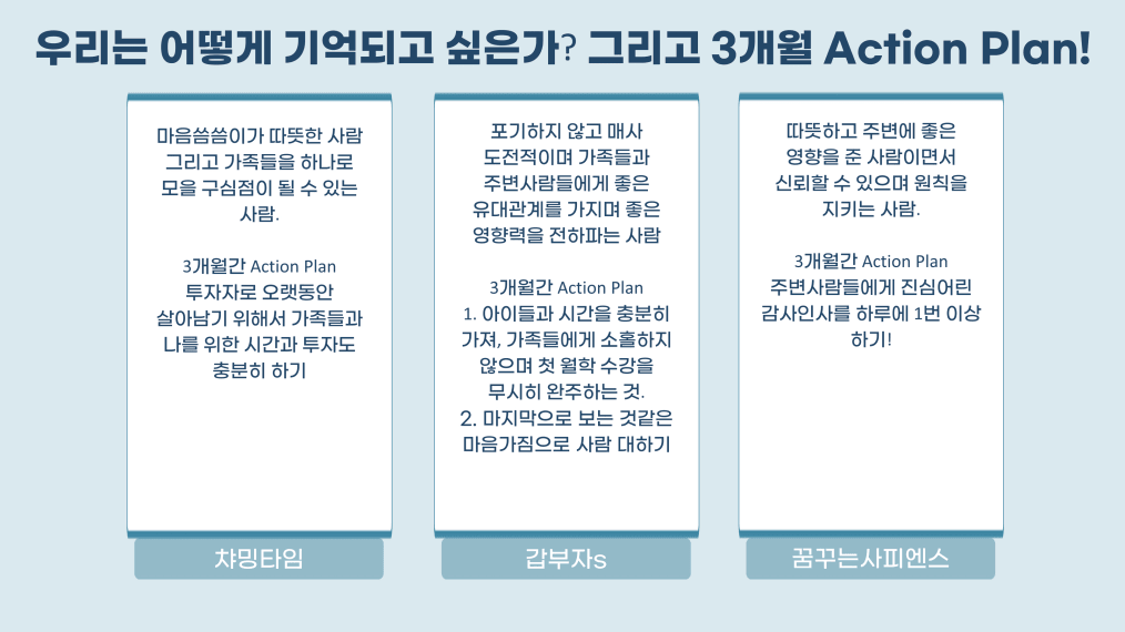 마지막으로 서로 어떤 사람으로 기억되고 싶은지,