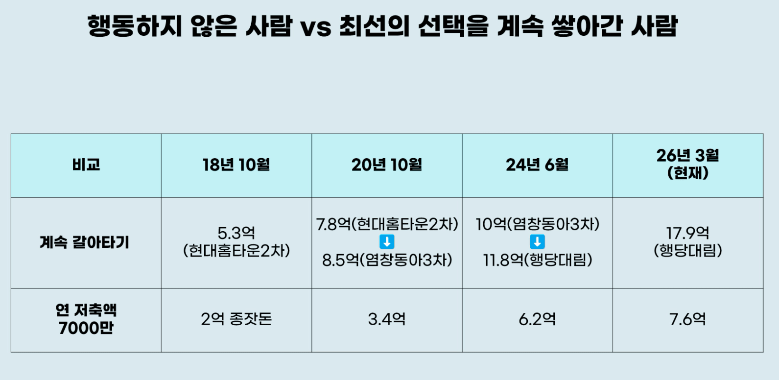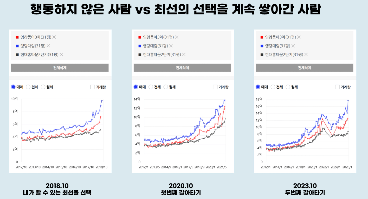 행동하지 않은 사람과 최선의 선택을 쌓아간 사람간의