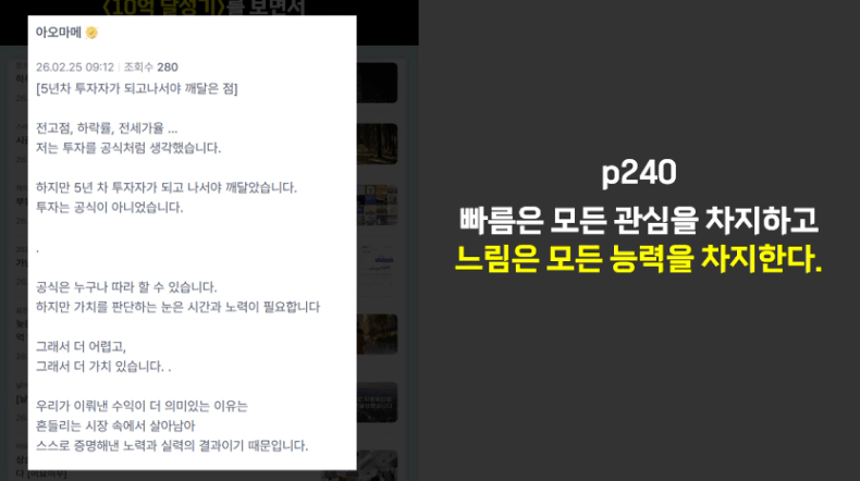 지금 당장의 결과와 속도에 흔들리기보다는