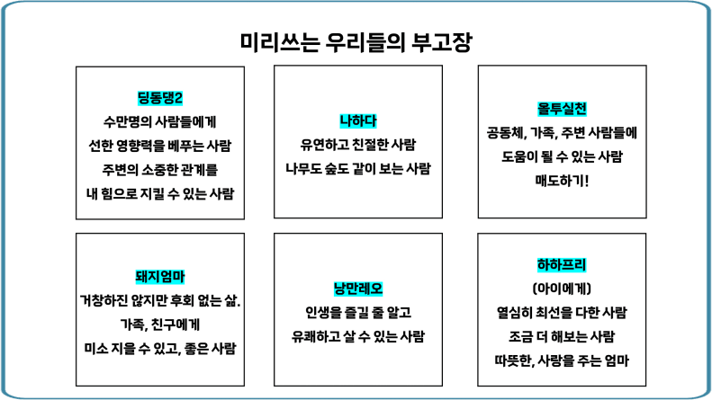 하하프리님, 나하다님, 올투실천님, 돼지엄마님, 낭만레오님