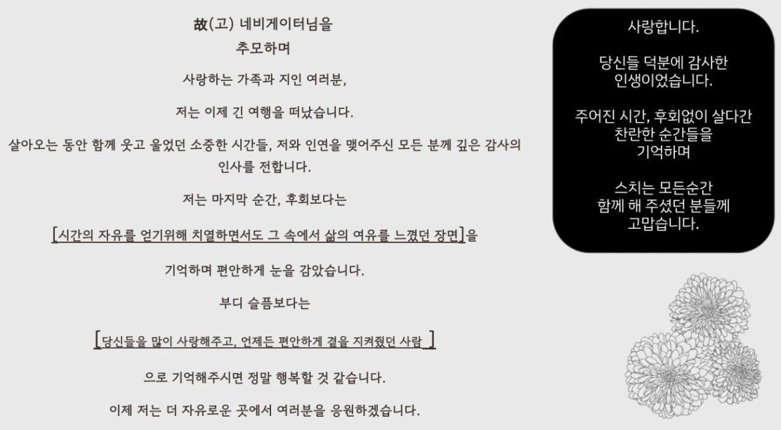 [미리쓰는 부고장,가상 부고…
