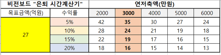 목표 금액 27.4억 (현재 나이 31세, 연저축액 3000만원)