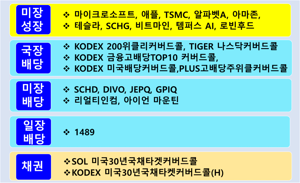 국장(ISA와 IRP) 계좌에서 KODEX 200타겟위클리커버드콜과 KODEX미국배당커버드콜액티브 2개가 상위 10종목에 포함되어 있습니다.