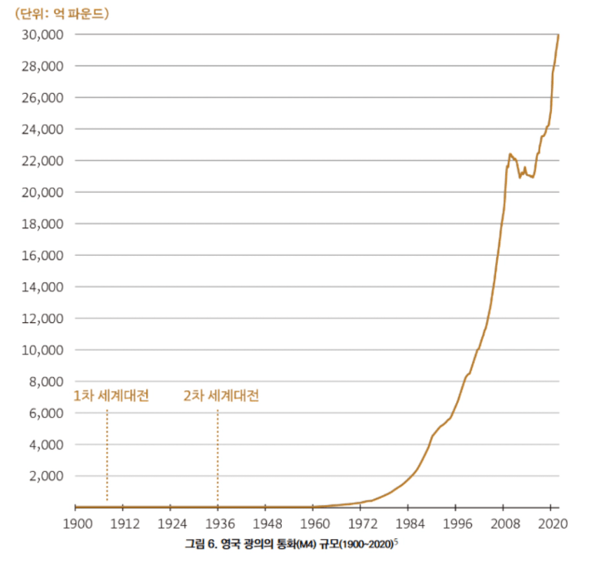 이와 같은 그래프를 제시하면서 1970년부터 갑자기 통화량이 증가한 이유를 뒤에서 이야기해준다고 했는데