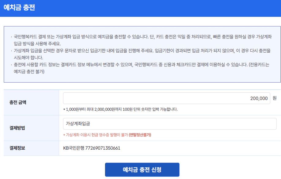 카드로 충전하시면 2~3일 걸리기 때문에 바로 쓰셔야 한다면 가상계좌 입금 추천드립니다.
