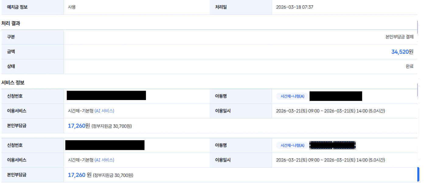 아동수당 (중복 가능): 아동수당은 돌봄 서비스 여부와 상관없이 100% 중복 수령이 가능합니다. 2026년부터는 지급 대상이 9세 미만(이후 단계적 확대)으로 확대되었습니다.