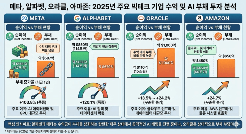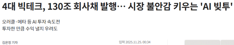 역시나 반복되고 있다. 이번에는 다르다 왜? 닷컴버블시에는 기업들의 수익이 없었지만 지금 AI기업들은 수익을 내고 있기에 다르다고 많은 매체에서 매일 떠들고 있다.하지만 실상은 회사채를 통한 빚투를 하고 있다. 특히 얼마전에는 구글이 100년회사채 발행을 통해 46조원이라는 돈을 끌어모았다. 개인도 현금흐름이 중요하지만 기업들도 현금흐름이 중요합니다. 과연 늘어나는 빚투를 수익으로 감당가능한가? 구글을 제외하고 부채를 감당하기에는 버거워보입니다. 이번에도 다르지 않다고 생각하는 이유입니다.