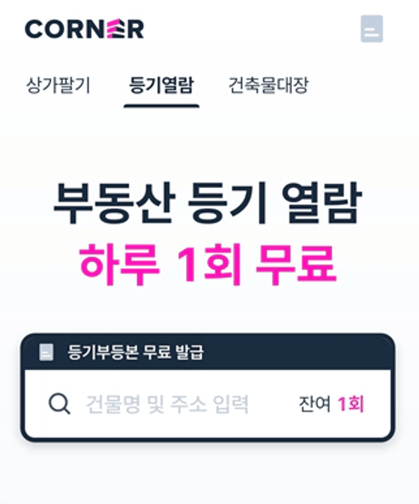 다름 아닌! 등기부열람은 매일 1회 무료로 볼 수 있는 어플 입니다 !