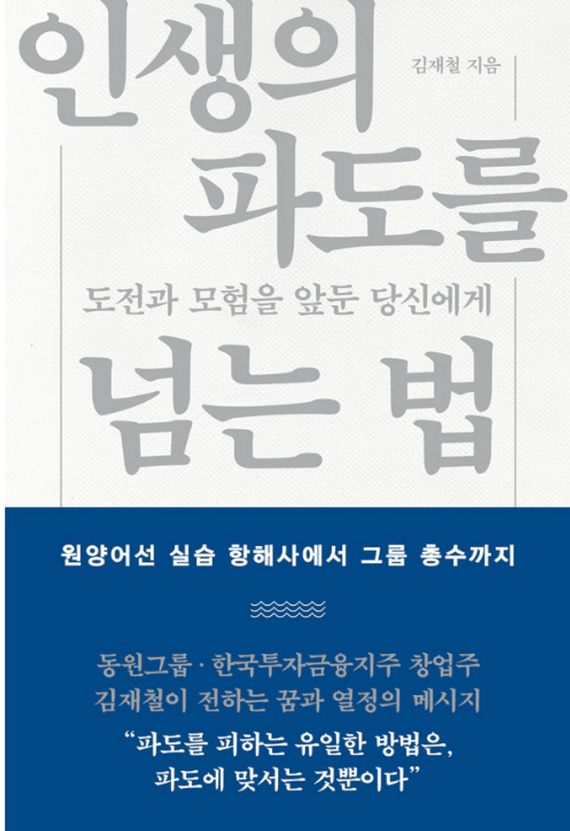 : 저자 김재철 회장은 무급 실습 항해사로 참치잡이 배에 올라 글로벌 기업인 동원그룹을 일궈낸 입지전적인 인물입니다. 평생 거친 바다와 치열한 경영 현장을 누비며 체득한 생생한 경험을 바탕으로, 인생의 위기를 피하지 않고 당당하게 맞서 돌파해 내는 굳건한 개척 정신과 지혜를 독자들에게 전하고 있습니다.