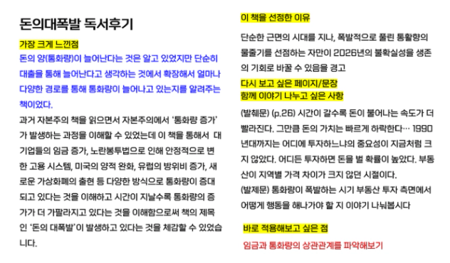 : ‘One source Multi use’를 배웠지만 이번 3개월은 글쓰기가 잘 되지 않았는데 강의 준비와 투자 복기를 하면서 심적인 부분이 문제가 있었다. 그 부분이 해결되니까 글쓰기도 잘 나오고 마음이 편해졌다.