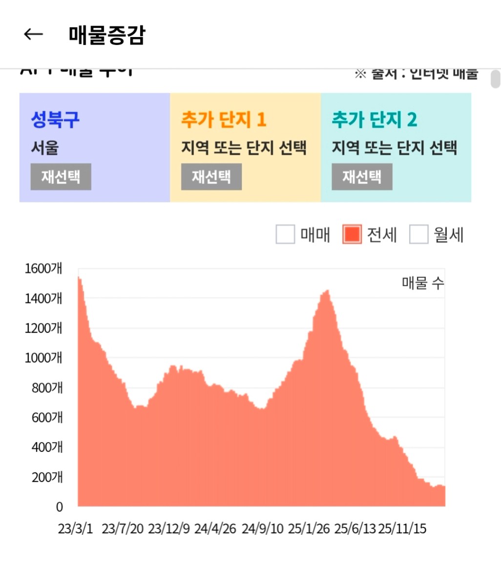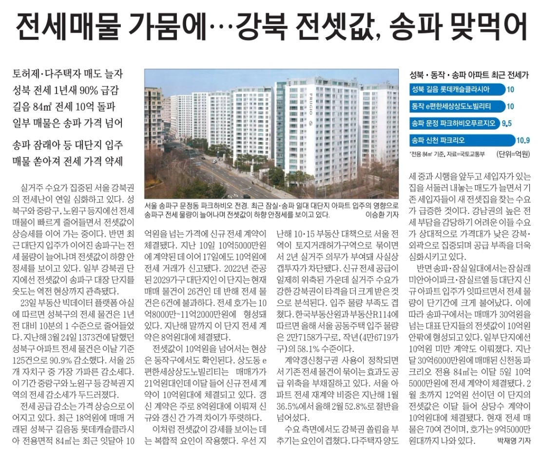 반면에 성북구는 공급이 줄면서 전세도 거의 씨가 마름