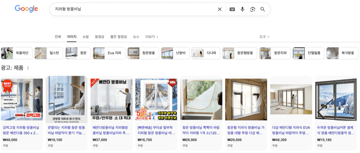 이런 문풍지는 창틀 전체를 투명 비닐로 덮어버리는 방식인데, 이게 실내 온도를 무려 3도나 올려줍니다. 처음 이 문풍지를 샀을 때 "환기는 어떡하지?" 하고 생각했었는데요, 요즘은 지퍼형 방풍비닐이 잘 나옵니다. 환기할 때 지퍼만 슥 열면 되니 걱정 마세요.^^