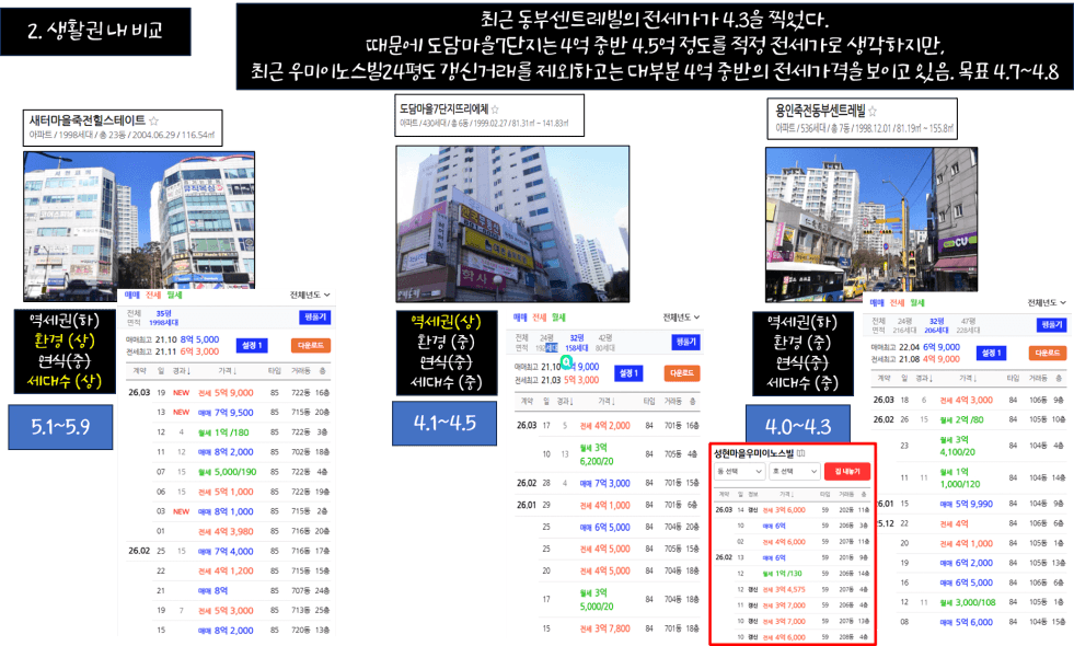 단지 내 비교, 생활권 내 비교, 공급물량확인까지 모두 하고나면 적정 전세가를 파악할 수 있습니다.