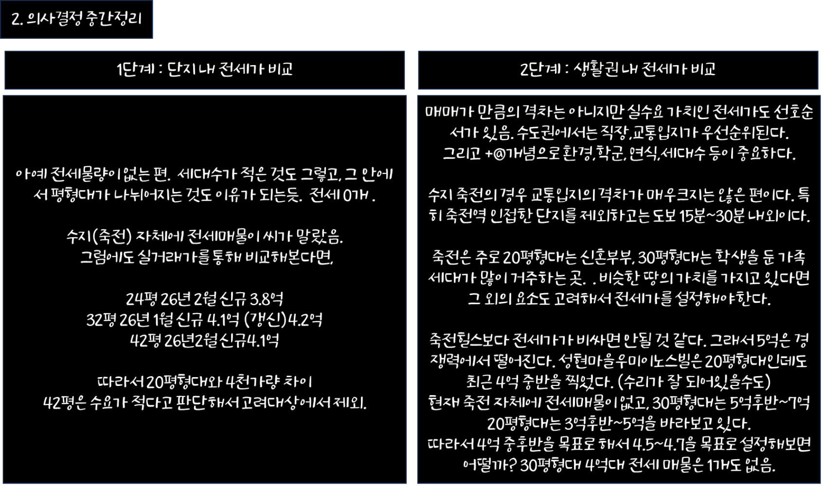 나의 상황 (자금, 라이프) / 시장의 상황 ( 지역 별 전세수요 등)