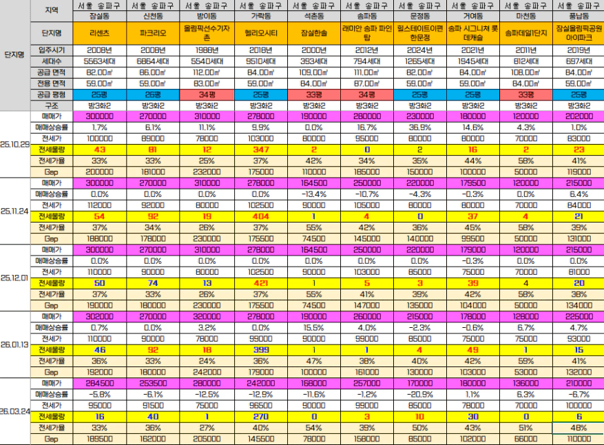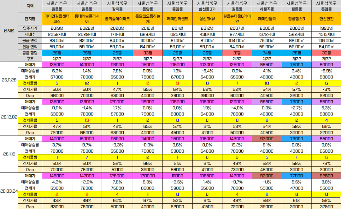 성북구는 오른것과 내린 것이 혼재하긴 하지만 전반적으로 올랐다. 내렸던 것 올랐고, 많이 올랐다 싶었던 건 좀 내리면서 키를 맞추는 느낌이다. 전세 매물도 늘어난 것도 있지만 전반적으로 줄었다는 느낌