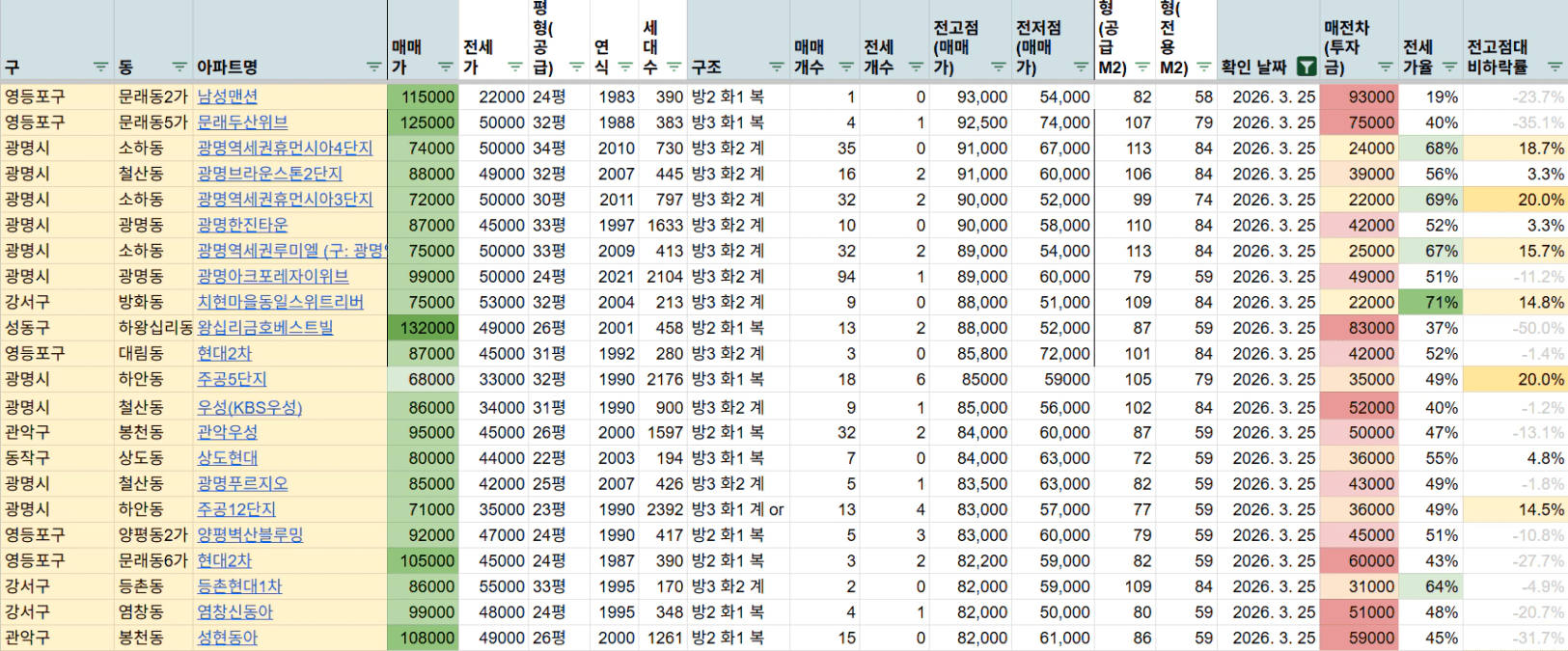 서울은 구축도 전부 3급지 입지 괜찮은 것들은 전고점 이상 올라왔구나.