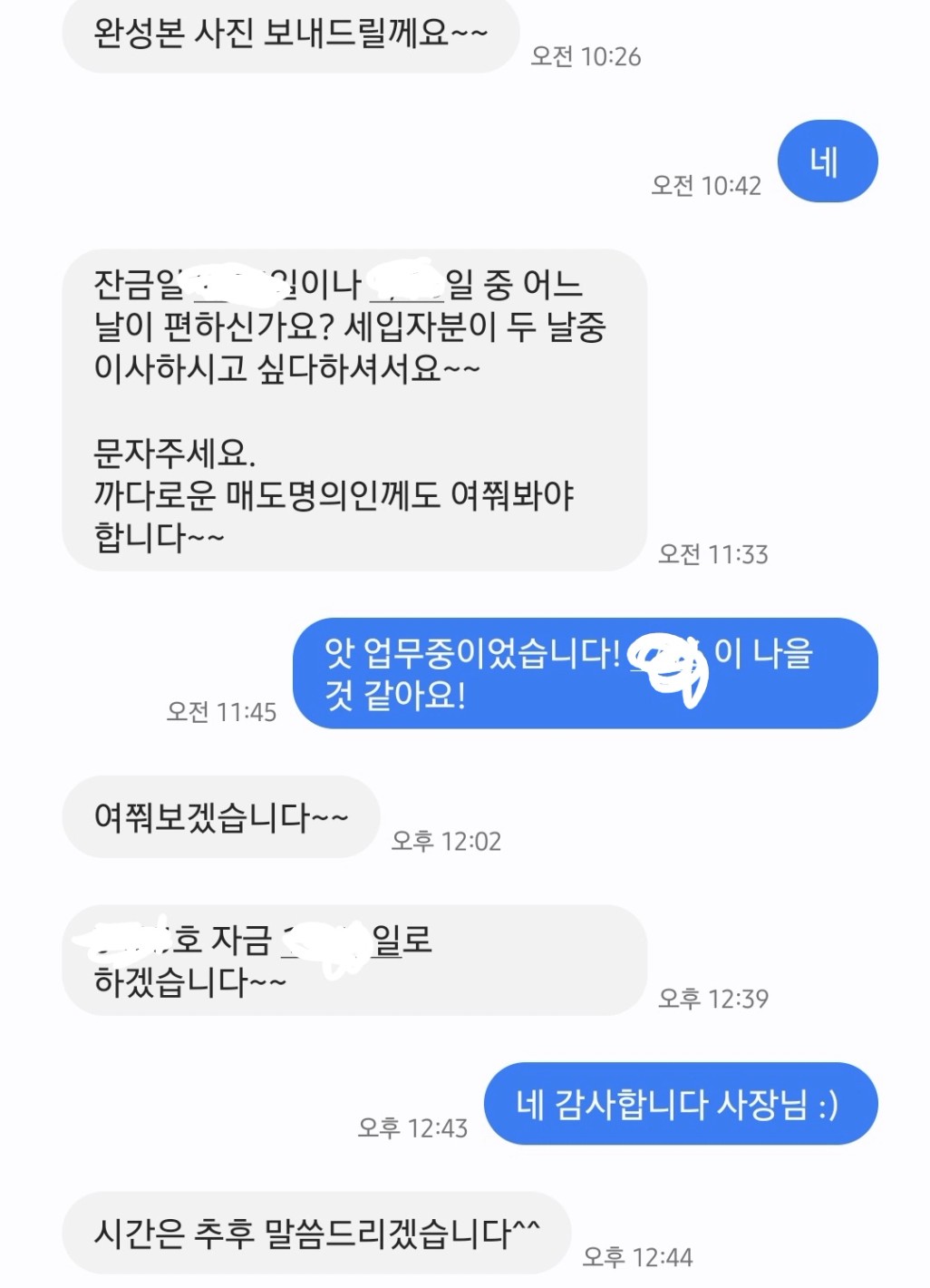본계약 이틀 전, 사장님께서 또 조심스레 전화를 걸어왔습니다.